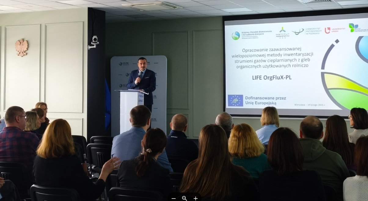 19 lutego 2026 r. w IOŚ-PIB odbyło się oficjalne rozpoczęcie projektu LIFE OrgFluX-PL „Opracowanie zaawansowanej wielopoziomowej metody inwentaryzacji strumieni gazów cieplarnianych z gleb organicznych użytkowanych rolniczo”, który będzie realizowany w okresie luty 2026 - styczeń 2030.