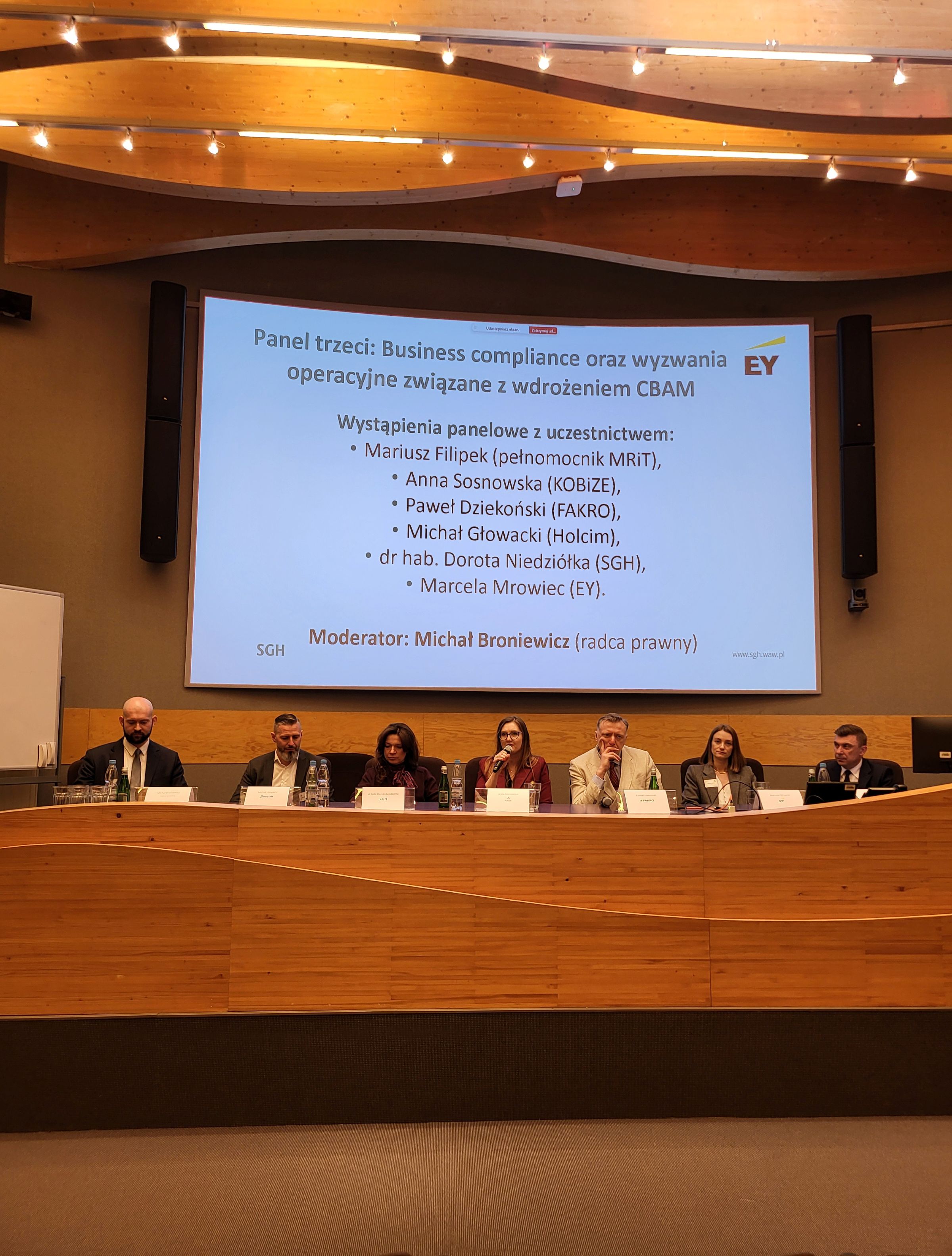 25 marca br. przedstawiciele KOBiZE, na zaproszenie dr hab. Aleksandra Wernera (SGH), wzięli udział w konferencji „CBAM 2026 – konsekwencje dla przemysłu i handlu” organizowanej przez Szkołę Główną Handlową oraz EY Polska. Wydarzenie poświęcone było skutkom wdrażania mechanizmu CBAM dla przedsiębiorstw, przemysłu i handlu.
